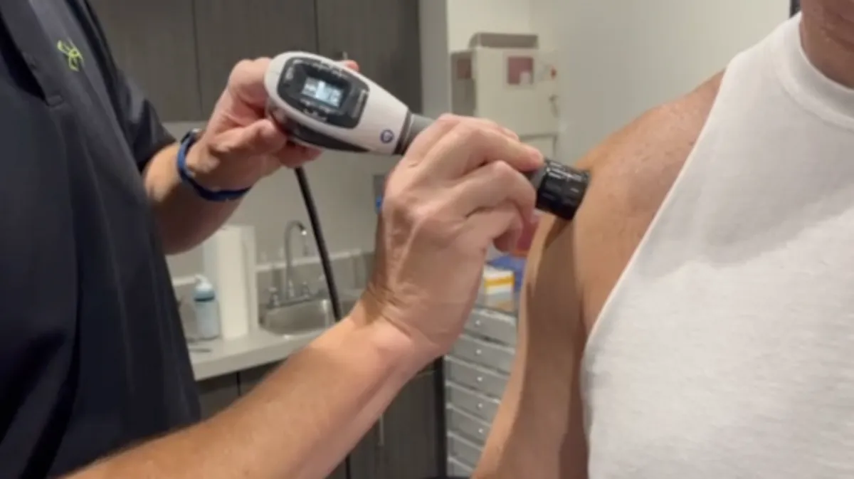 It uses energy waves to penetrate deep into the tissue to promote blood flow, circulation, reduce inflammation and eliminate pain while also stimulating the migration of your body’s stem cells for long-term healing.